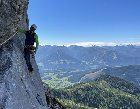 Nicht nur die Qualität des Felsens, sondern auch die unvergleichlichen Touren, die Schönheit der Umgebung, sowie die 850m hohe Südwand des hohen Dachsteins machen dieses Gebiet zu einem der lässigsten Klettergegenden in ganz Österreich.