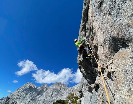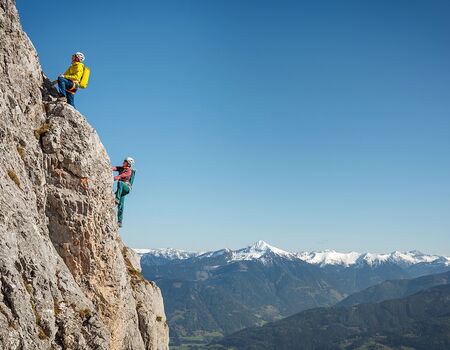 - Nach einer Klettertour in der Dachstein Südwand den Sonnenuntergang am Gipfel zu erleben